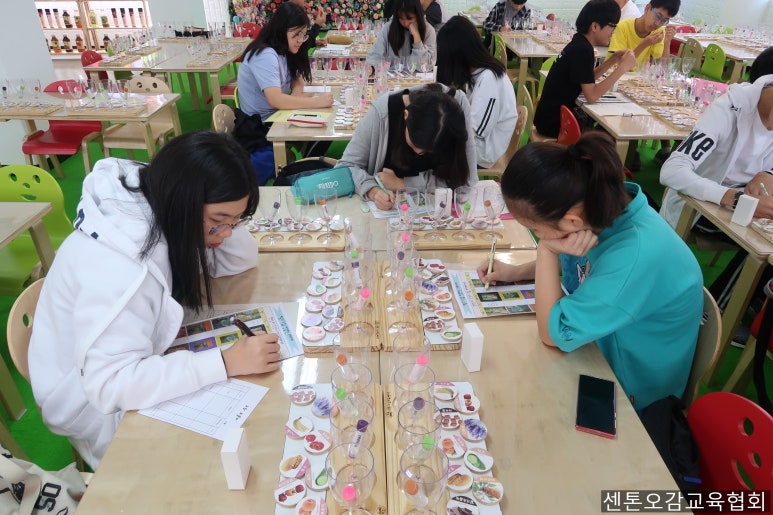우선, 향기와 후각 및 진로에 대한 이론교육을 마친 후, 후각 및 향기를 체험하러 온 학생들이니 만큼 직접