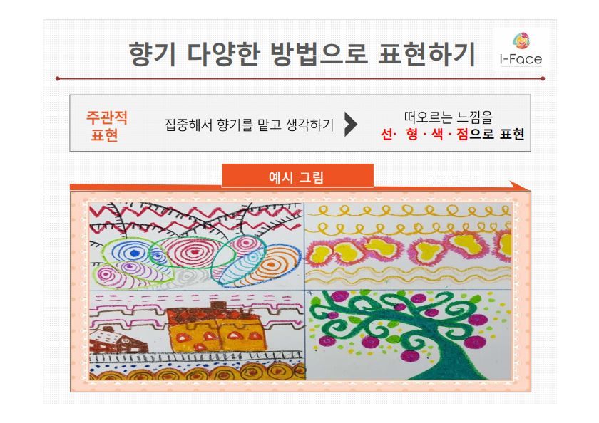 향기는 눈에 보이지 않고, 같은 향을 맡아도 다른 기억과 감성을 끌어낼 수 있는 아주 흥미로운 교육도구입니다.